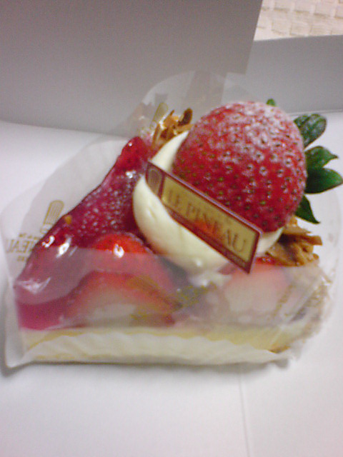 近所のル・ピノーでケーキ買ってきて、ワインで勝手にお祝いです。